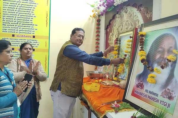 Under the Banner of Maharishi Adhyatmik Jan Jagran Abhiyan (MAJA) Laghurudra Abhishek in school Campus Ganpati Mandir.